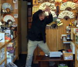 写真を撮られて困るようなことはあるまいに、どうしてこんなことになったのでしょう。観光客の誰しもがデジカ メや携帯電話でバシバシ写真を撮りますが、それが気にくわないのでしょうか。となりに同じものを売っている店があり、そこは撮影も自由なのに、ある扇子屋のおやじは、カメラを見ると目の色を変えて腕を振り回し「駄目だ駄目だ。そこに書いてある」などと言うのは笑止でした。