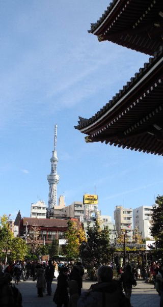 浅草寺の境内からも東京ス カイツリーが見えるようになりました。隅田川を挟んではいますが、吾妻橋を渡って歩けば15分ほどで着きます。橋のたもとには、隅田川の観光船が発着します。すっかり綺麗になった隅田川からの東京もまたいいものです。東京新名所は浅草の賑わいを増すことになりそうです。