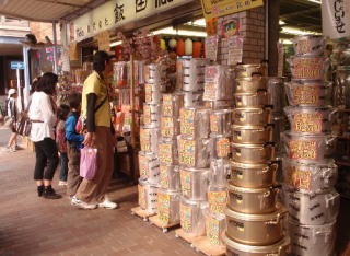 かっぱ橋商店街へと足をのばしました。キッチン用品ではこの町以上にまとまって売っているところはないでしょう。鍋釜茶碗包丁…。何でもあります。寿司もスパゲティも本物そっくりの展示用に作ったものを売ってます。